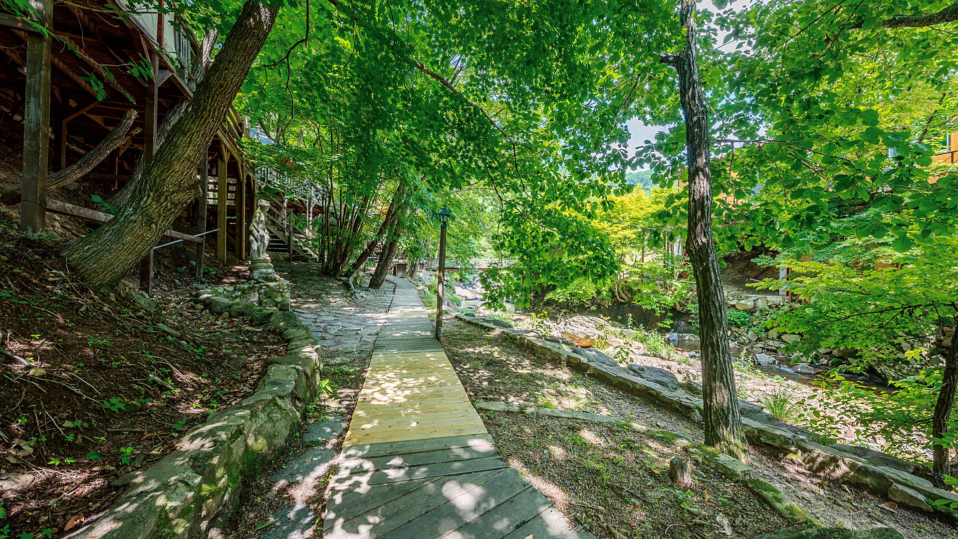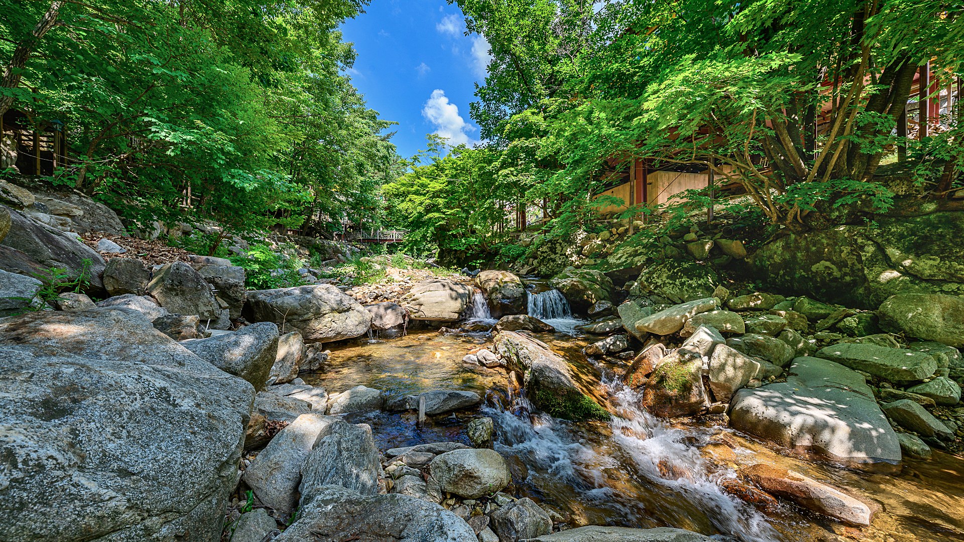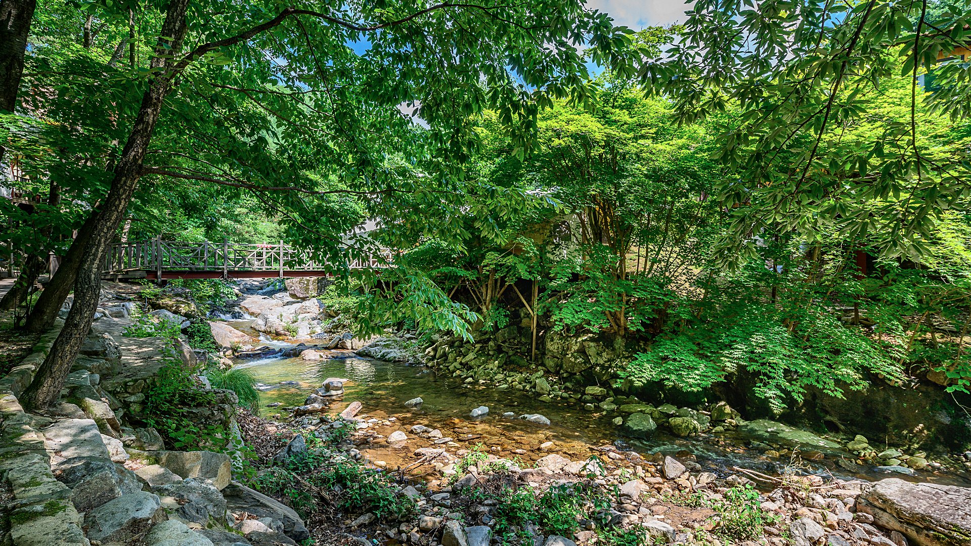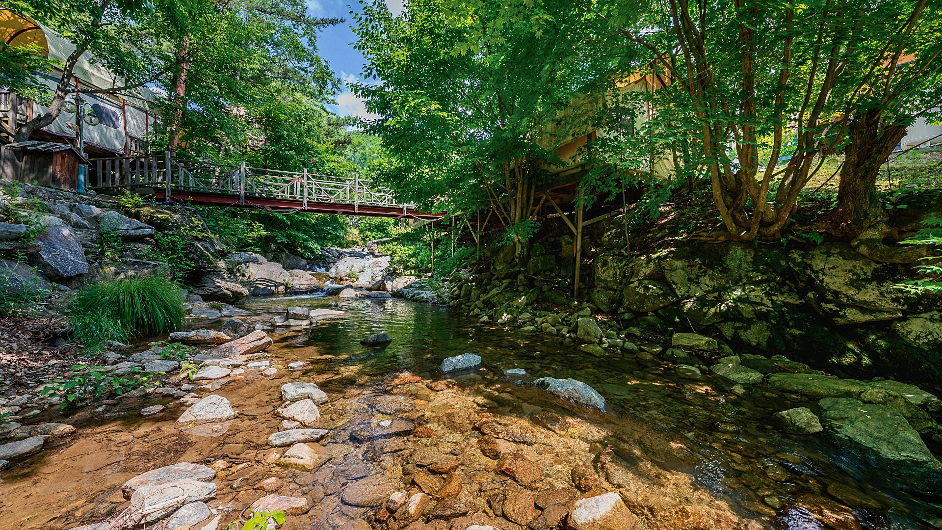 펜션앞으로 흐르는 맑은 계곡 물소리와 산속에 지저귀는 산새들이 자연의 소리를 연주하며